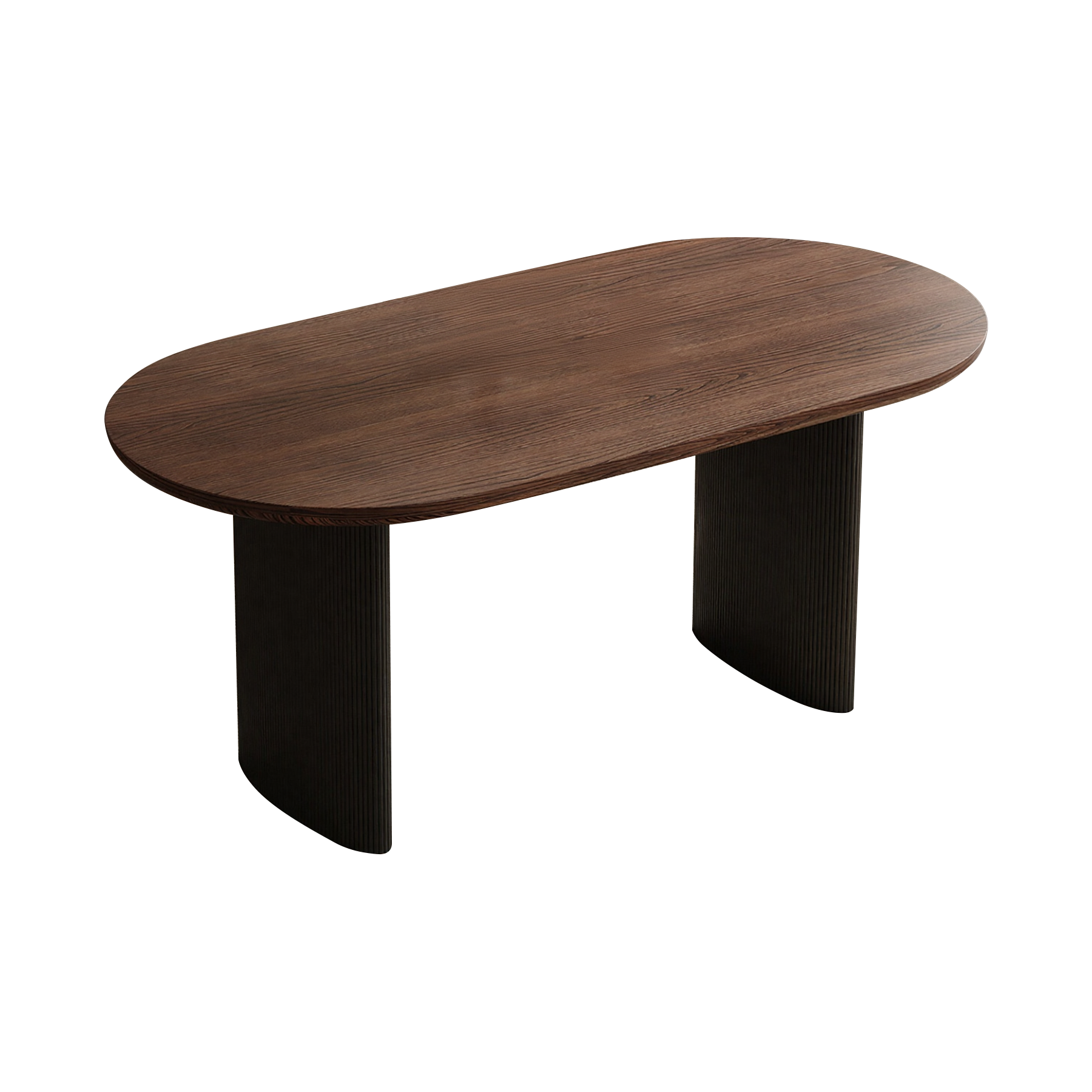 The Nordic Oval Walnut Dining Table brings together warm mid-century charm and modern Nordic minimalism. Designed with a smooth walnut elm-veneer top and sculptural fluted pedestal legs, it creates a refined focal point for any dining room or studio workspace. Its spacious oval surface comfortably seats four to six people, making it perfect for family dinners, creative projects, or collaborative work sessions. Stable, stylish, and versatile, this designer table blends seamlessly into contemporary, Scandinavian, and retro-inspired interiors.