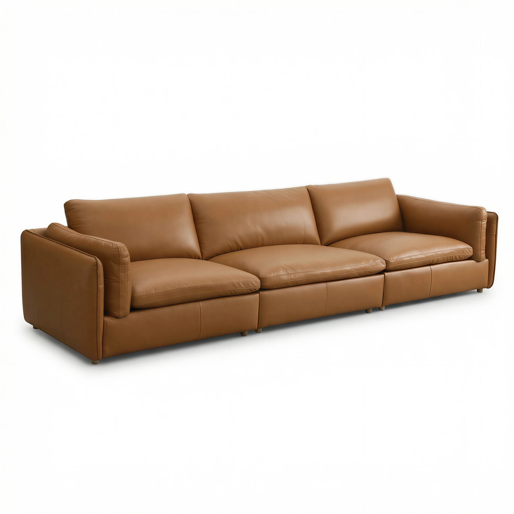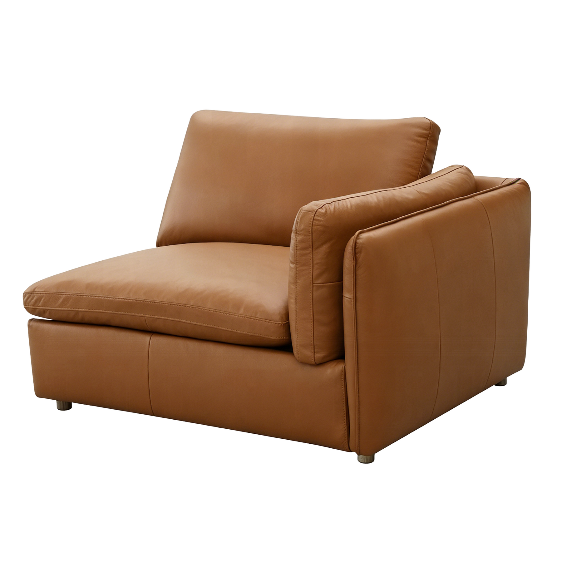 The Relax Leather Modular Sofa features premium brown top-grain leather, a flexible modular design, and spacious deep seating for everyday comfort. With its clean modern silhouette and durable solid wood frame, this modern leather sofa brings lasting style and functionality to any contemporary living room.