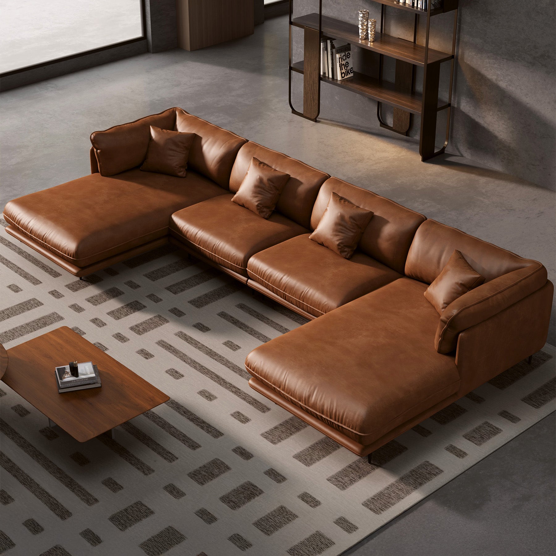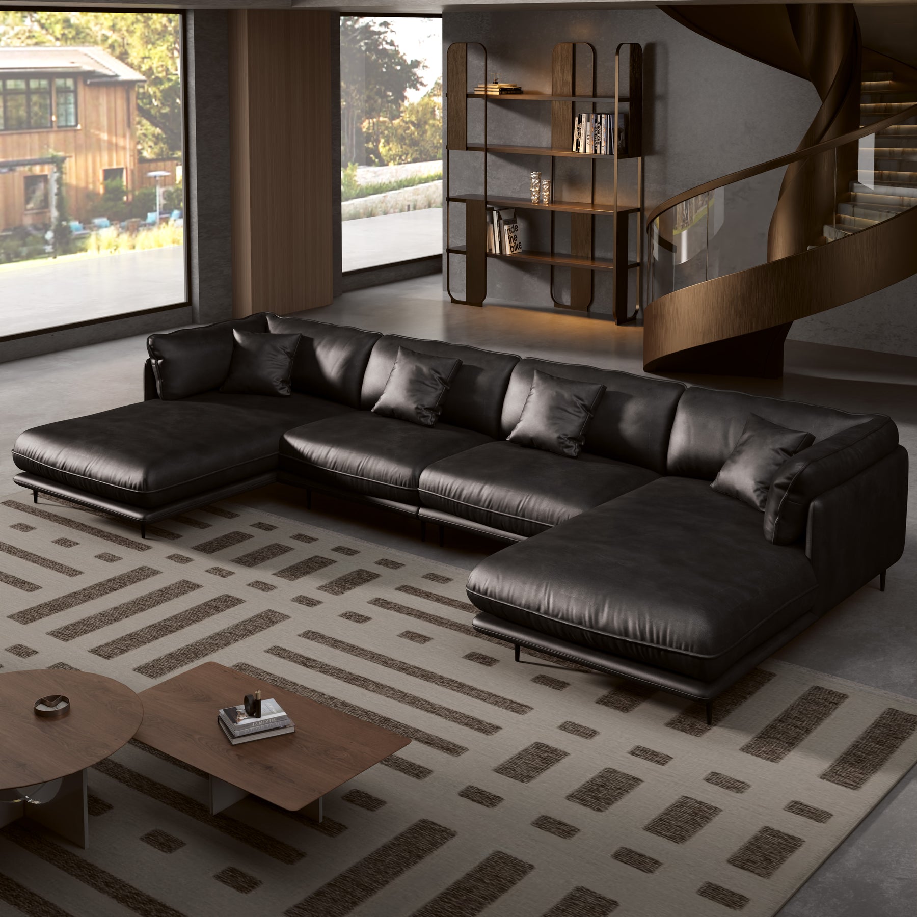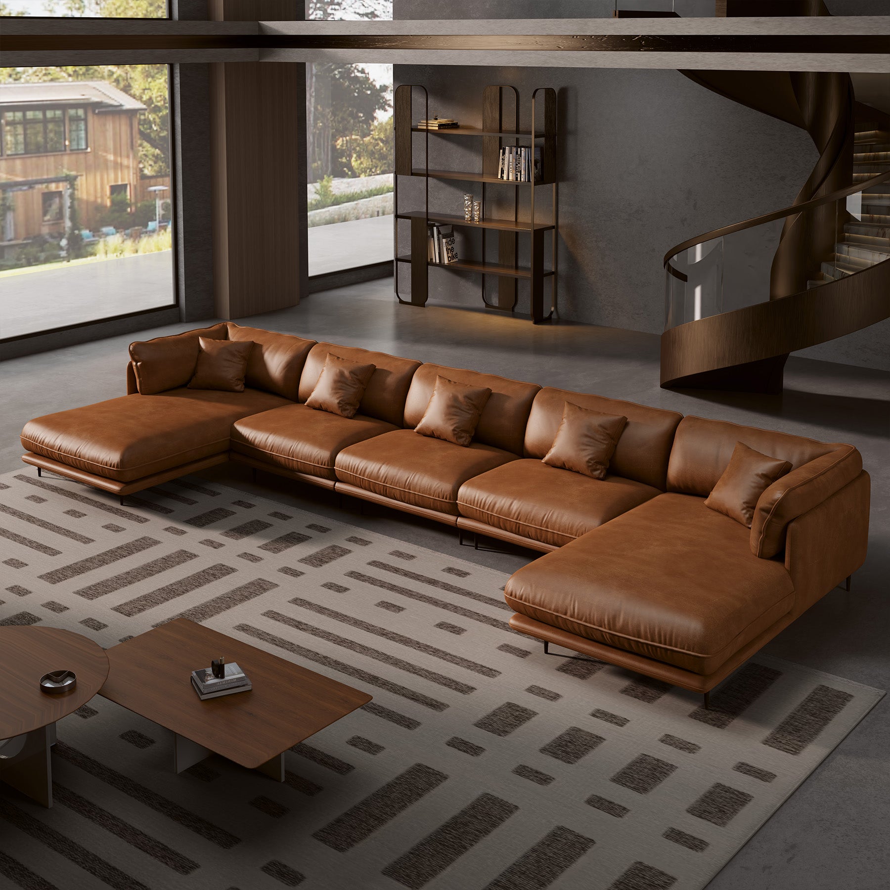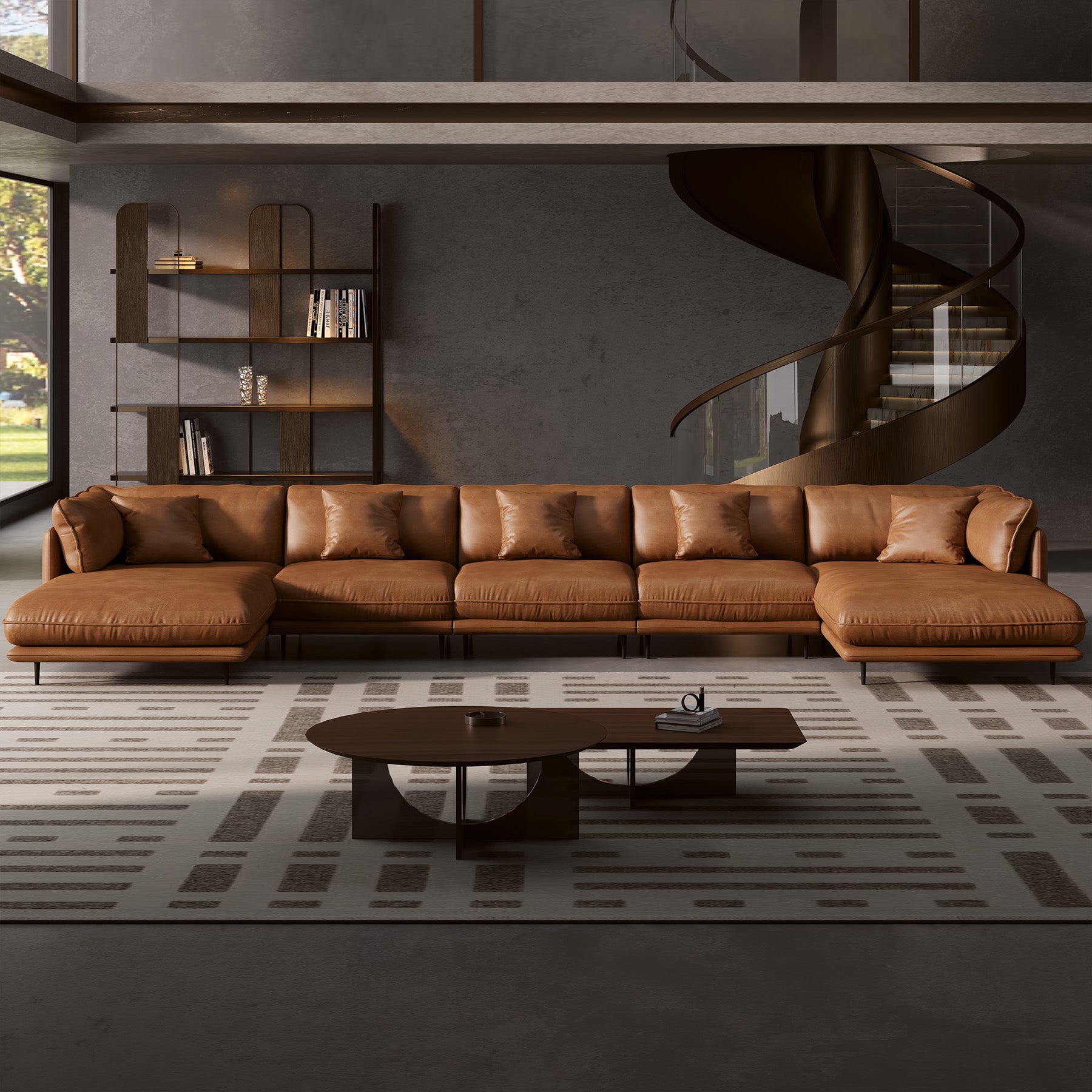 Upgrade your home with our vanilla collection sectional sofa, a perfect fusion of modern minimalism and comfort. Crafted from high-end, genuine leather, it's not just chic but also skin-friendly, breathable, and easy to clean. The plump and elastic cushions add an extra layer of indulgence. Elevate your space with this effortlessly stylish and inviting piece.