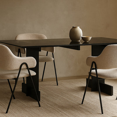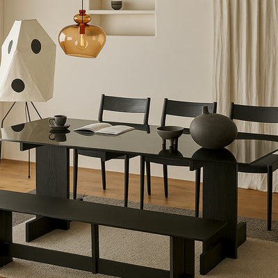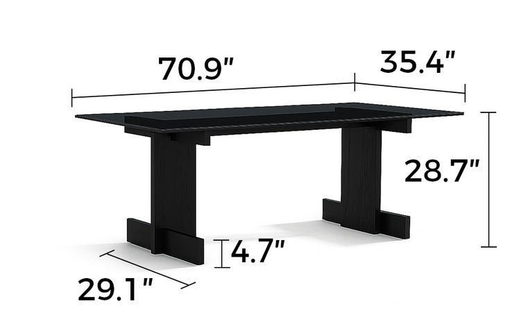 The Zayle Dining Table merges modern minimalism with functional durability. Its high-strength tempered glass top resists impacts while maintaining a sleek, airy look. Supported by a solid FAS-grade oak base with traditional mortise-and-tenon joinery, it offers unmatched stability and timeless appeal. Every edge is carefully rounded for safety, and the broad surface accommodates dining, work, or gatherings effortlessly. A perfect blend of Scandinavian simplicity and Japanese wabi-sabi charm, the Zayle table is designed for both style and longevity.
